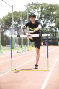 陸上では110メートルハードルをいう種目をやっていました。